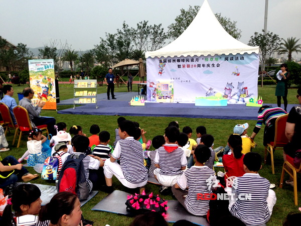 5月24日,首屆橘洲咖啡閱讀月•“綠草地”閱讀行動(dòng)暨笨狼20周年慶生,在長(zhǎng)沙橘子洲頭景區(qū)內(nèi)的沙灘公園舉行。著名作家“笨狼媽媽”湯素蘭,湖南省委宣傳部副部長(zhǎng)魏委,湖南省新聞出版局副局長(zhǎng)毛良才,湖南省委宣傳部出版處處長(zhǎng)李武祥,中南出版?zhèn)髅郊瘓F(tuán)出版部部長(zhǎng)田方斌,湖南少年兒童出版社副社長(zhǎng)吳雙英,湖南少年兒童圖書館館長(zhǎng)薛天,省文化廳木偶劇團(tuán)團(tuán)長(zhǎng)譚青松,兒童文學(xué)作家鄧湘子、皮朝暉、唐櫻、周靜等嘉賓紛紛到場(chǎng),為提倡我國(guó)少年兒童多讀書、讀好書貢獻(xiàn)力量。