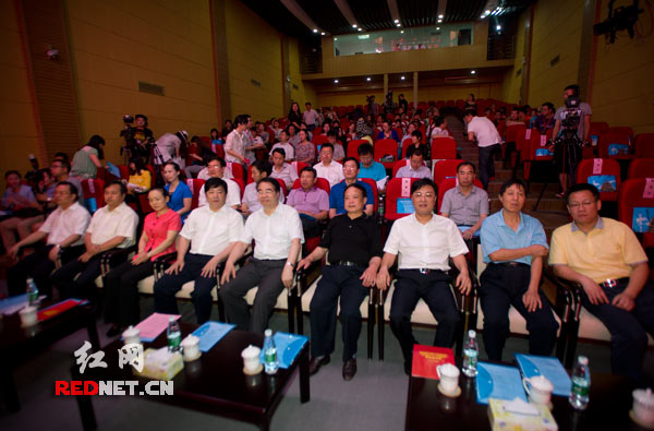 6月27日上午,湖南省委常委、省委宣傳部部長許又聲[前排左五]等領導參加在紅網(wǎng)演播大廳舉行的2014年中國(湖南)紅色旅游節(jié)新聞發(fā)布會暨中國湖南紅色旅游網(wǎng)啟動儀式。