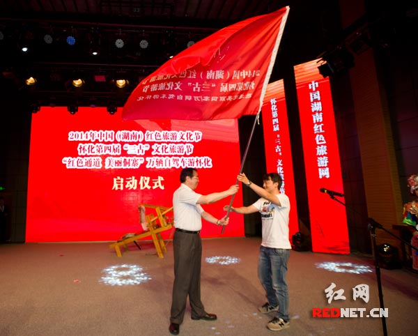 新聞發(fā)布會上,湖南省委常委、省委宣傳部部長許又聲為萬輛自駕車游活動授旗,啟動中國湖南紅色旅游網(wǎng)(http://hsly.rednet.cn/)。湖南省旅游局局長張值恒發(fā)布新聞,湖南省委宣傳部副部長、外宣辦主任周湘主持新聞發(fā)布會,懷化市市長李暉介紹懷化市情及相關旅游活動情況。出席新聞發(fā)布會的還有省政府副秘書長王光明,省旅游局副局長劉綿松,懷化市副市長楊開鳳,通道侗族自治縣委書記印宇鷹,中南傳媒董事、紅網(wǎng)黨委書記、董事長舒斌。